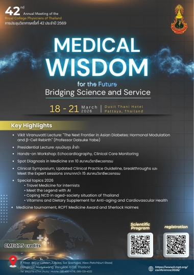 การประชุมวิชาการประจำปี ครั้งที่ 42 ปี พ.ศ. 2569 ราชวิทยาลัยอายุรแพทย์แห่งประเทศไทย ราชวิทยาลัยอายุรแพทย์แห่งประเทศไทย จัดการประชุมวิชาการประจำปี ครั้งที่ 42 ปี พ.ศ. 2569 Theme “ Medical Wisdom for the Future : Bridging Science and อ่านเรื่องนี้